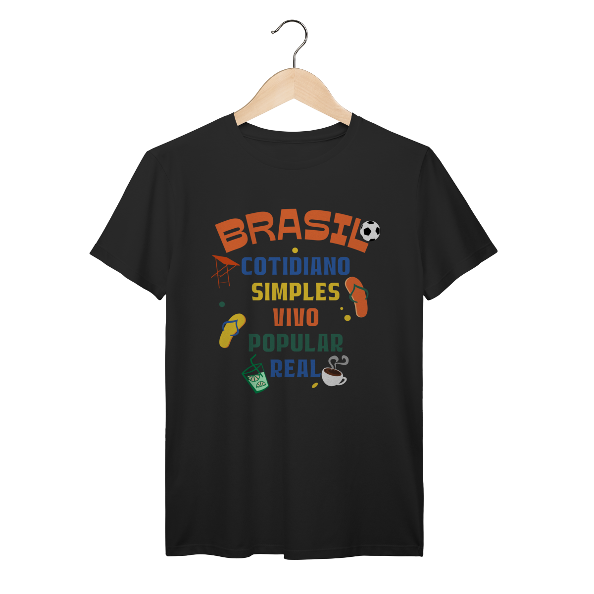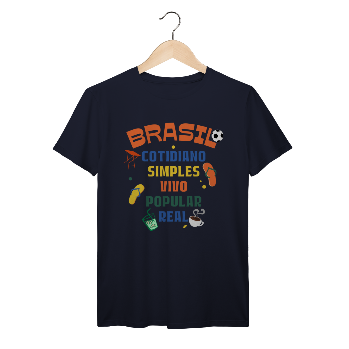 Um café forte pela manhã, um jogo improvisado de futebol, chinelos no pé e conversas tranquilas na rua ou no bar. Este design celebra o Brasil simples e popular — o Brasil real que acontece todos os dias.