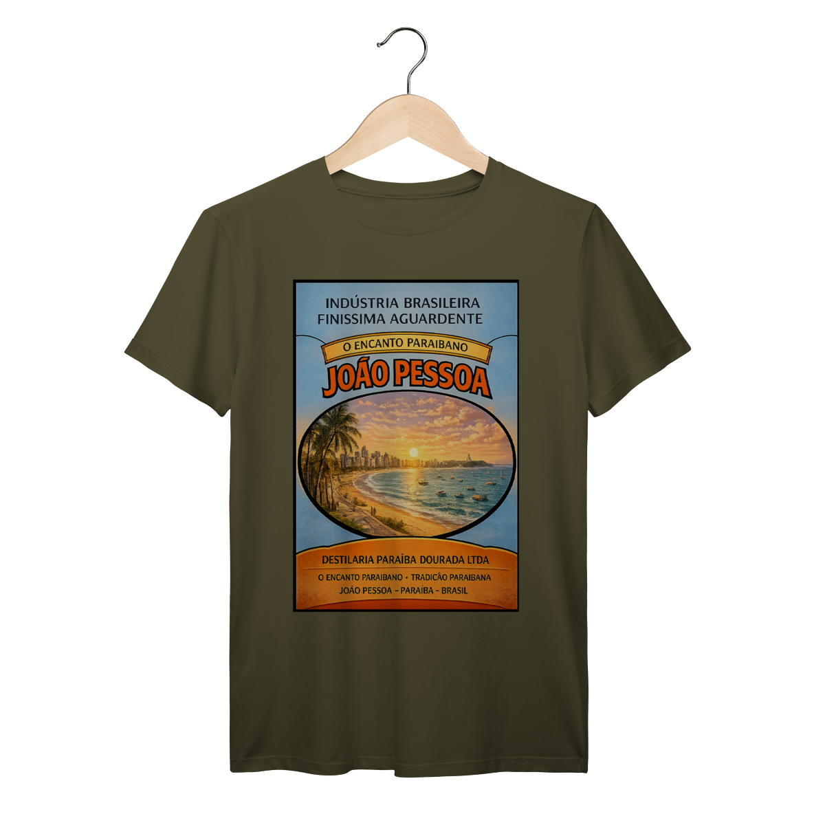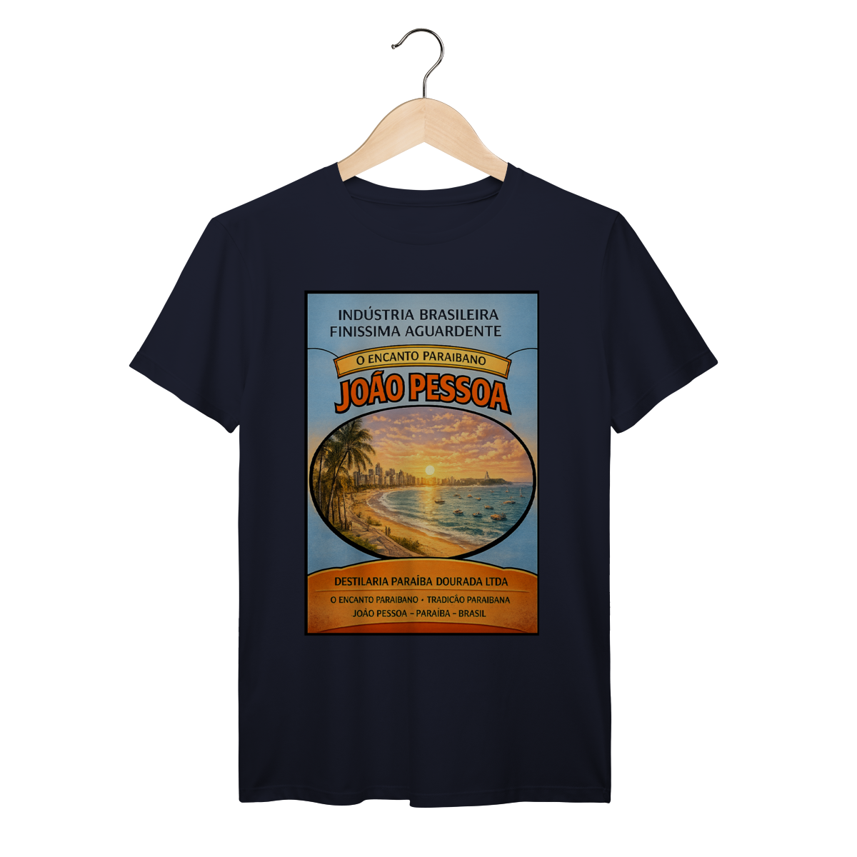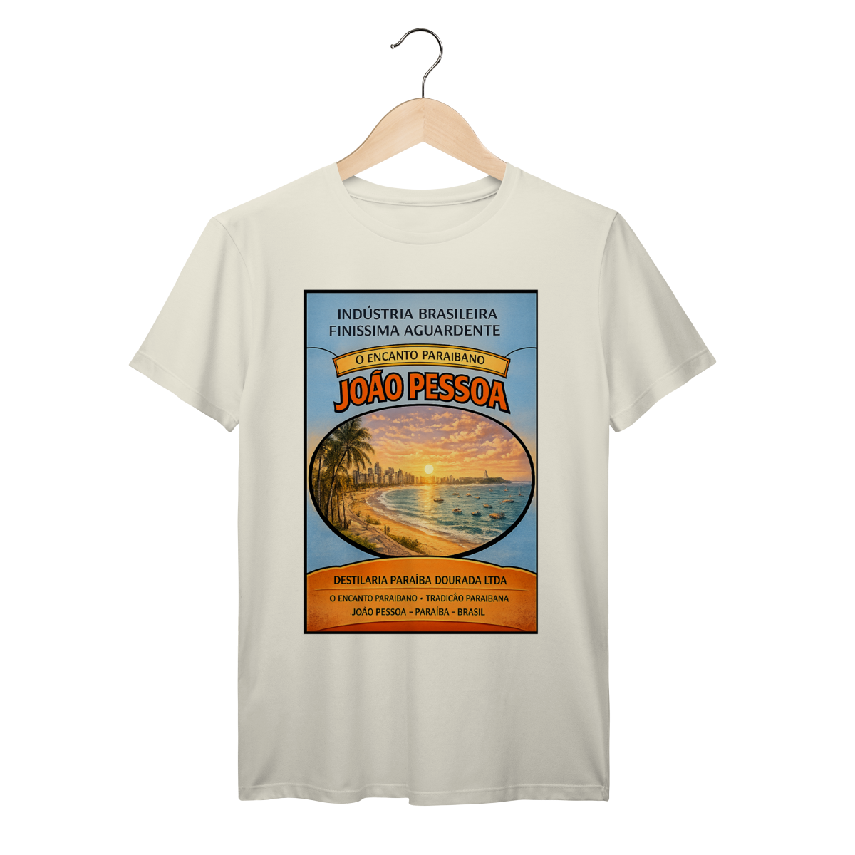 Arte exclusiva da série Aguardente inspirada em rótulos clássicos brasileiros. Esta edição celebra João Pessoa com ilustração vintage do litoral ao pôr do sol, combinando tipografia retrô e estética nostálgica para quem ama o Brasil e sua cultura visual.