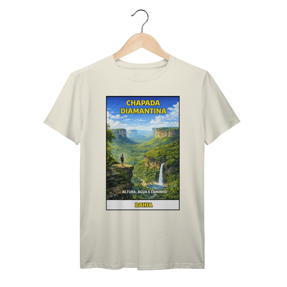 Inspired by the dramatic landscapes of Chapada Diamantina, this design captures the freedom of standing above it all — where height, water, and open trails define the journey. A tribute to one of Brazil’s most breathtaking national parks.