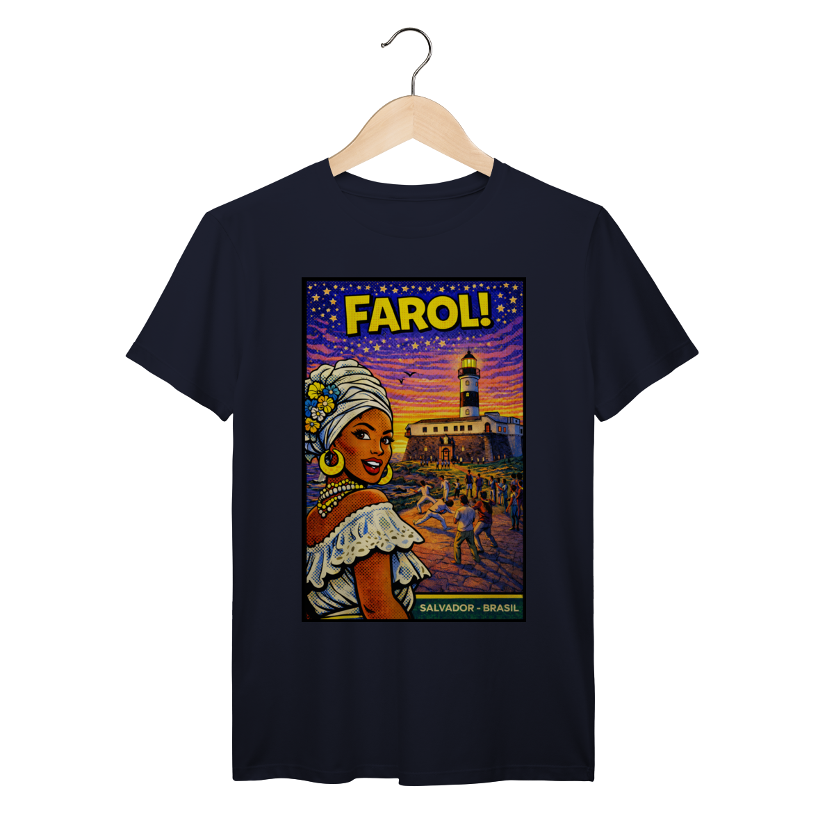 Cores do produto: Como cada tela de computador ou celular tem seu próprio jeito de mostrar cores, então a cor da sua camiseta e da estampa pode ser um pouco diferente do que você viu online.