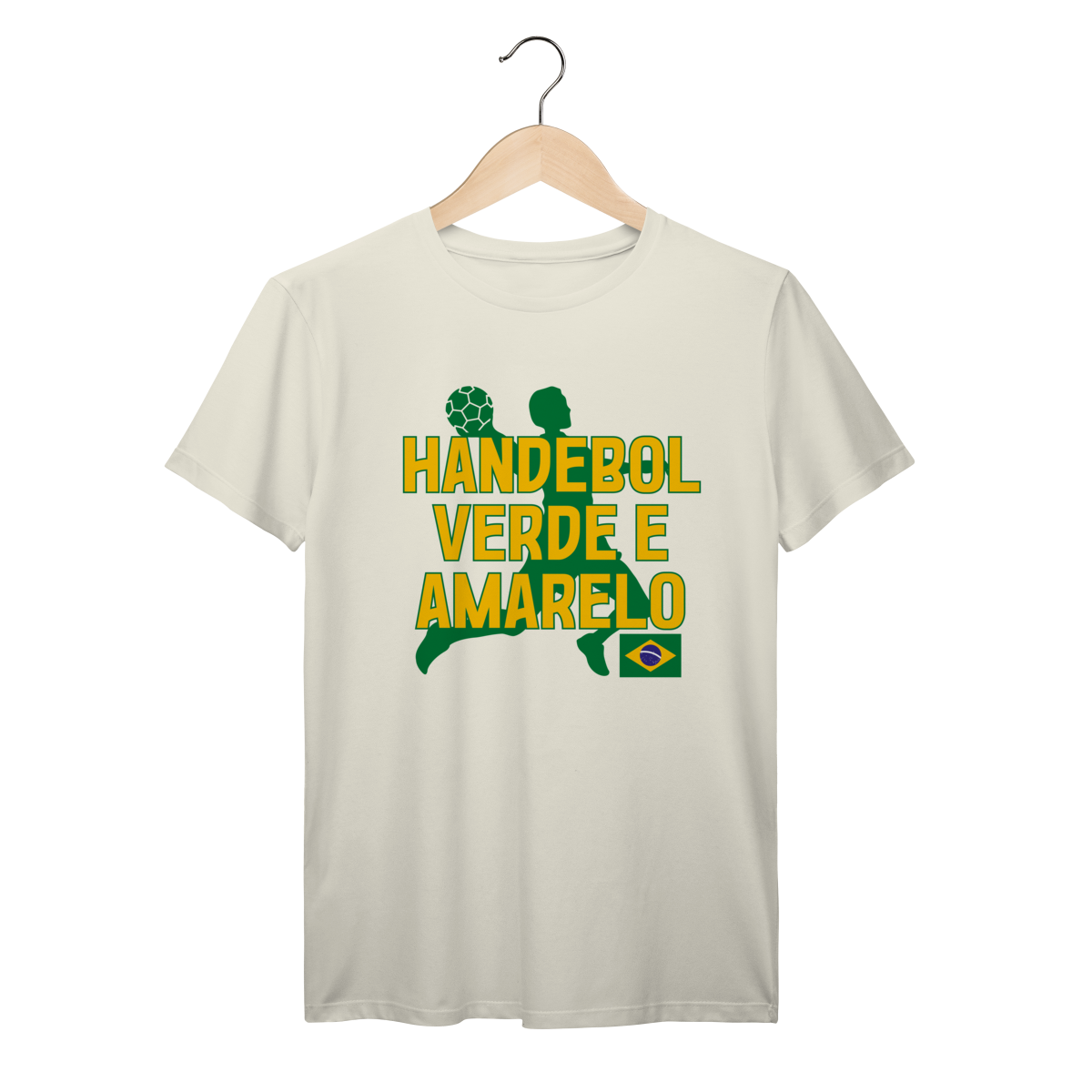 Velocidade e estratégia definem o handebol. Este design transmite movimento e competitividade com identidade brasileira marcante.