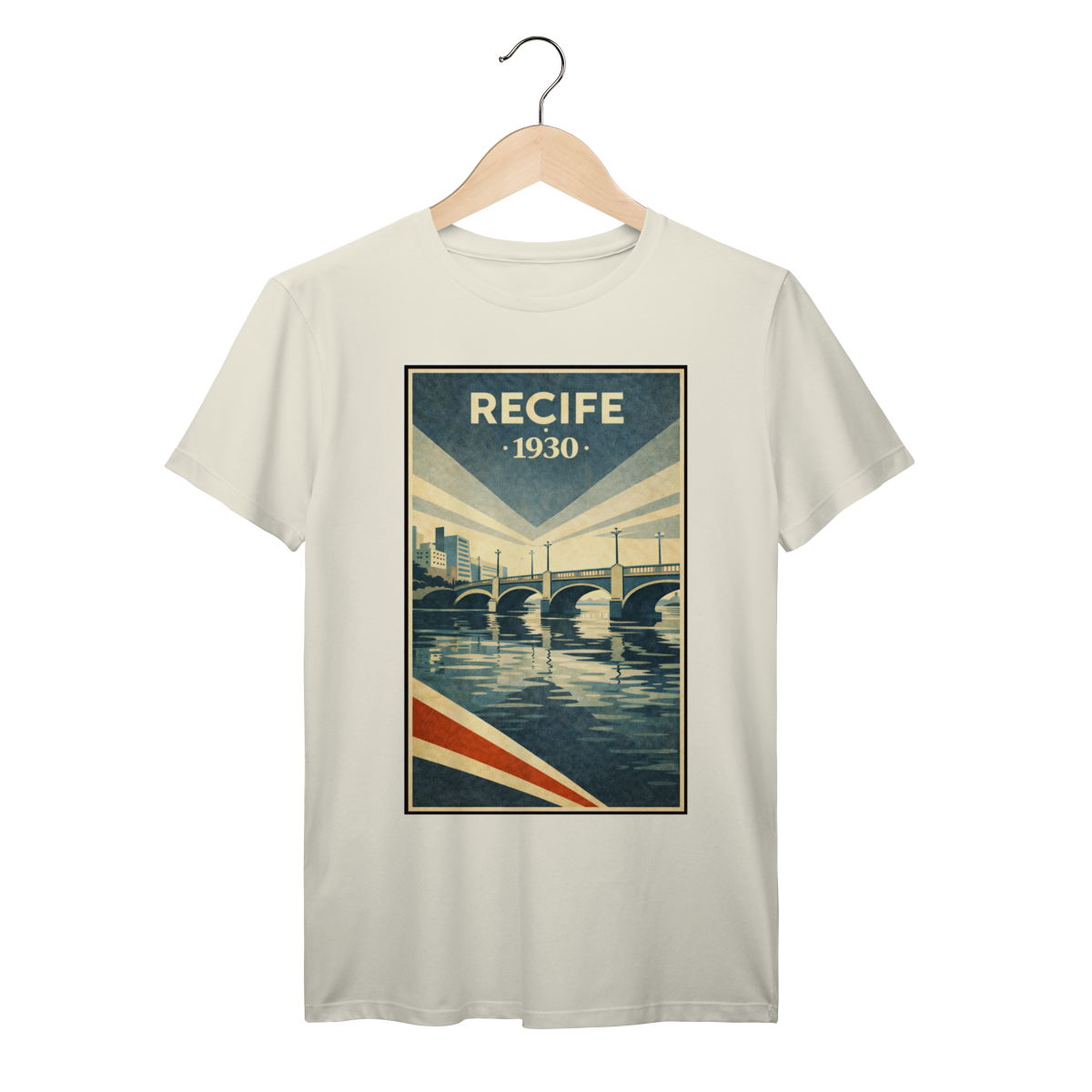 Inspirada na paisagem urbana recifense, esta arte destaca pontes, reflexos e geometria urbana com textura de cartão-postal antigo. Um design que transmite tranquilidade, memória e o charme do Recife histórico.
