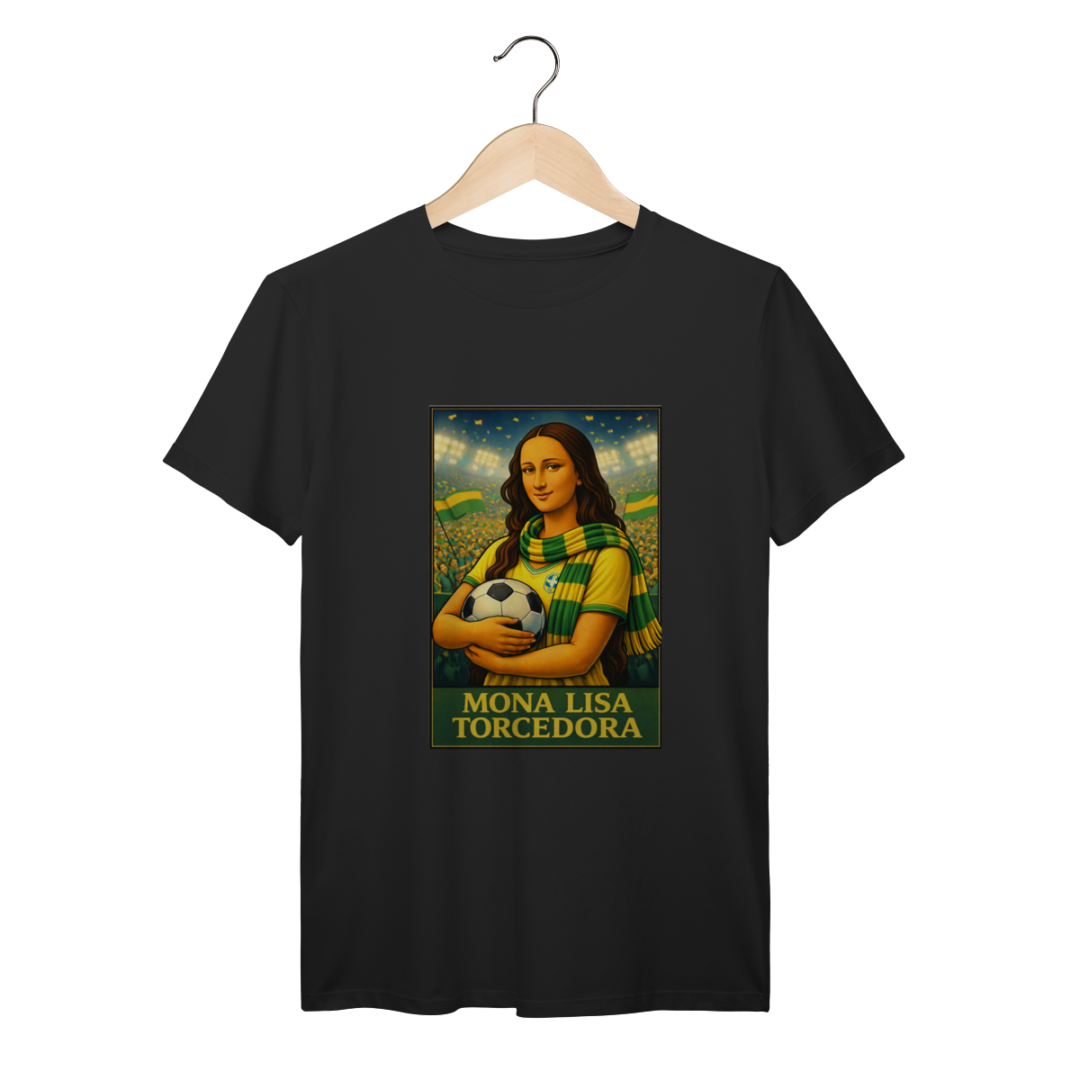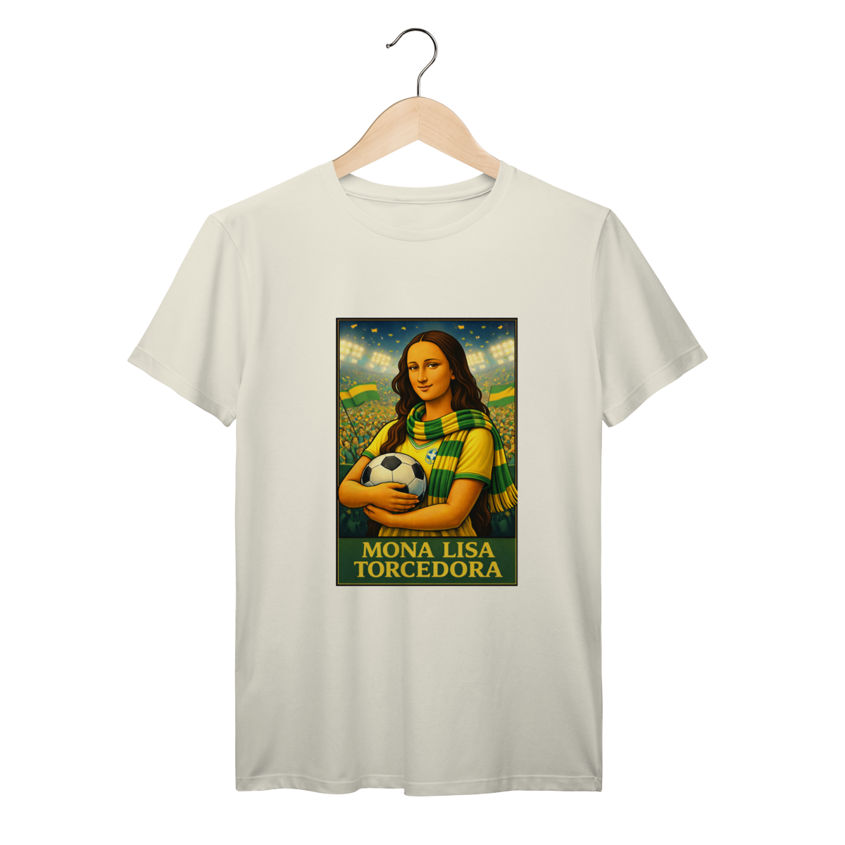 Em meio à torcida, bandeiras e emoção do estádio, Mona Lisa veste as cores da paixão nacional. Um design que traduz a vibração coletiva e o amor brasileiro pelo futebol.