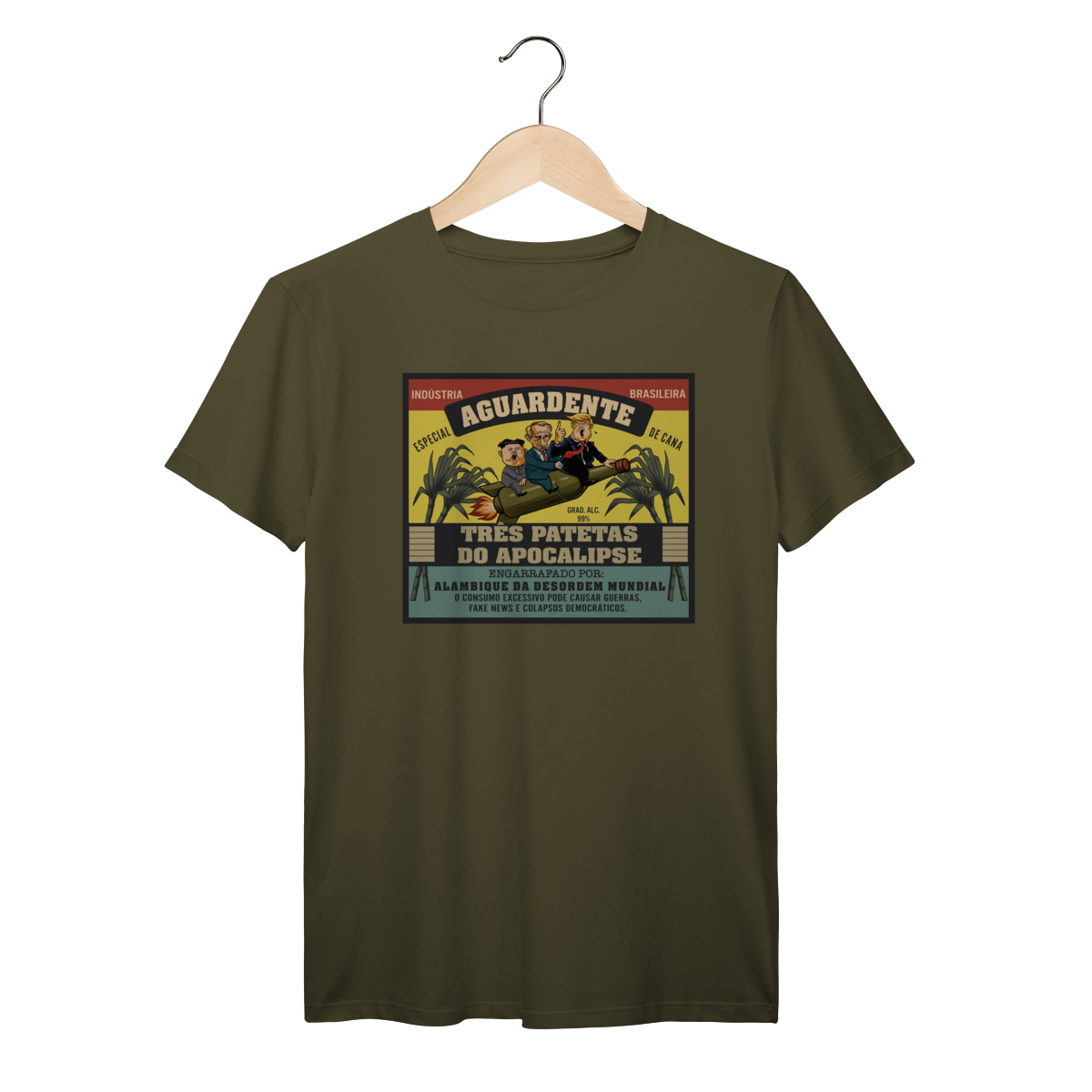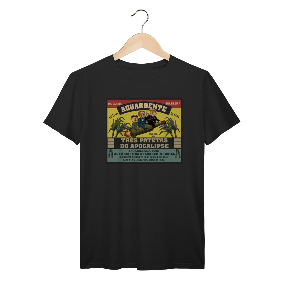 Uma paródia ousada no formato clássico de rótulo de aguardente.